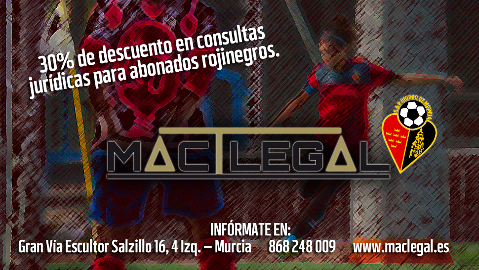¿Tienes algún asunto jurídico que solucionar? ¿Divorcio? ¿Accidente laboral o deportivo? ¿Accidente de tráfico? ¿Asuntos de herencia?… ¡Estás de suerte! Porque presentando tu carnet de abonado del Ciudad podrás aprovecharte de la gran oferta que MACLEGAL Abogados & Asesores Fiscales, patrocinador oficial de Ciudad de Murcia Femenino, ofrece a la afición rojinegra.